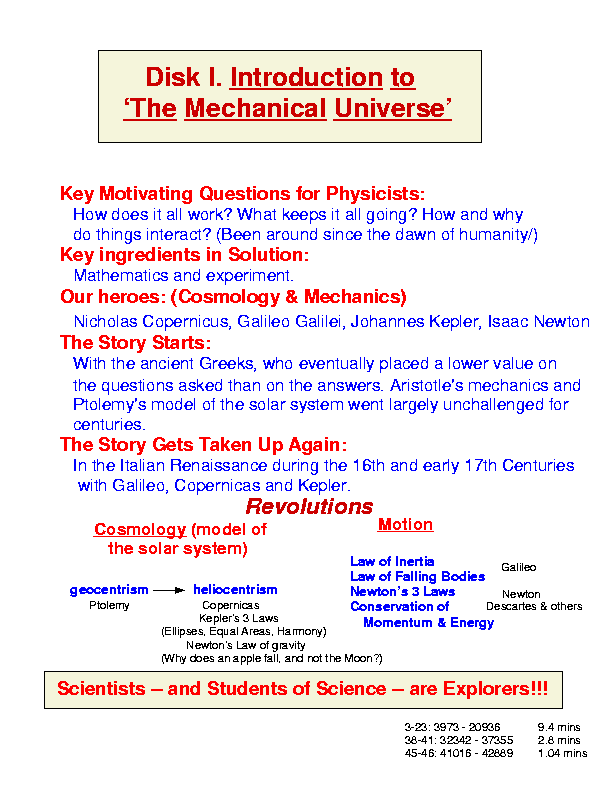 Lecture 3 (F 1/17): (`Mechanical Universe' Video: Introduction)